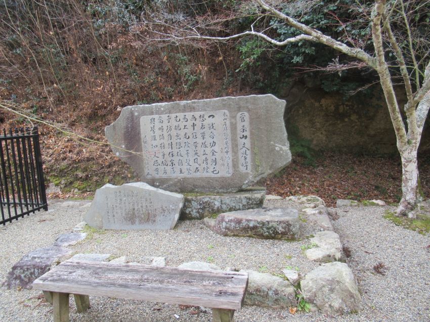 ![]() 小早川家墓所にある菅茶山作漢詩の文学碑 米山寺所有の「絹本著色小早川隆景像」を拝観した時に詠んだものといわれている。 菅茶山は頼山陽の師で福山藩の儒学者で漢詩人。 |