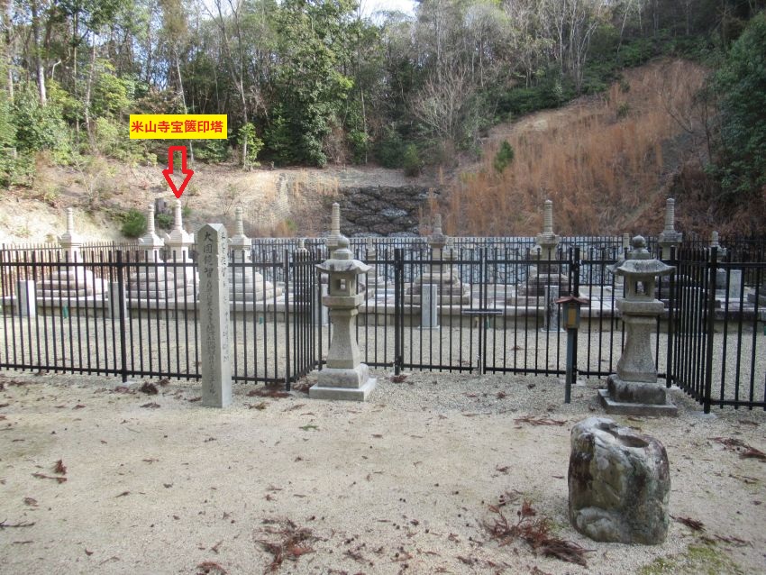 ![]() 米山寺宝篋印塔(国指定重要文化財) 一番左側のひときわ大きい宝篋印塔。 2018年の西日本豪雨で土砂が流れ込み倒れてばらばらになったものを修復しているため、新しく感じる。 |