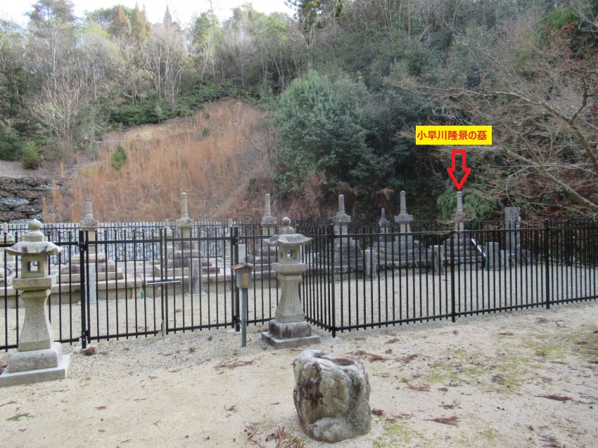 ![]() 小早川隆景(1533〜1597年)の墓(広島県史跡) 毛利元就の三男で、兄の吉川元春と毛利両川として本家の領土拡大にに大いに貢献した。 天文十三年(1544)、12歳で竹原小早川家(沼田小早川家の分家)の養子となり家督を継ぎ、天文十九年(1550)には 小早川本家の沼田小早川家も相続し当主となる。豊臣政権では豊臣秀吉の信頼を得て、五大老の一人に列せられた。 |
